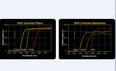 光譜圖(下圖分別為加上對比濾色板及戴上熒光增強眼鏡后的光譜圖)