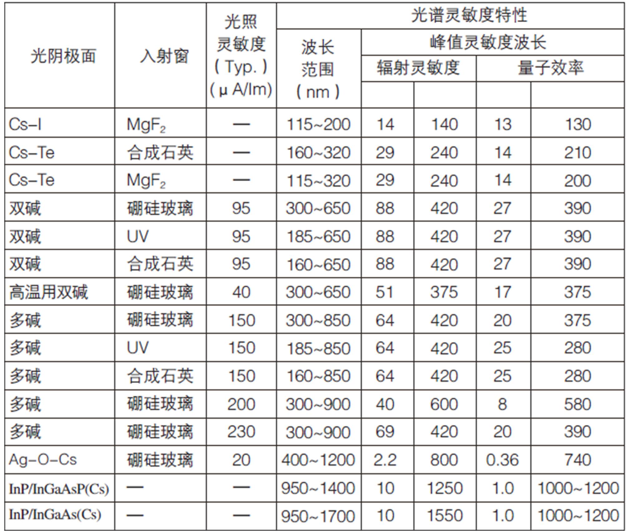 根據(jù)入射光的波長、光強、光束直徑、光現(xiàn)象發(fā)生的速度、使用環(huán)境等條件的不同,選擇合適的PMT、工作條件和電路配置,以達到佳測試效果。對此,可將PMT按照不同方法進行分類并選擇: