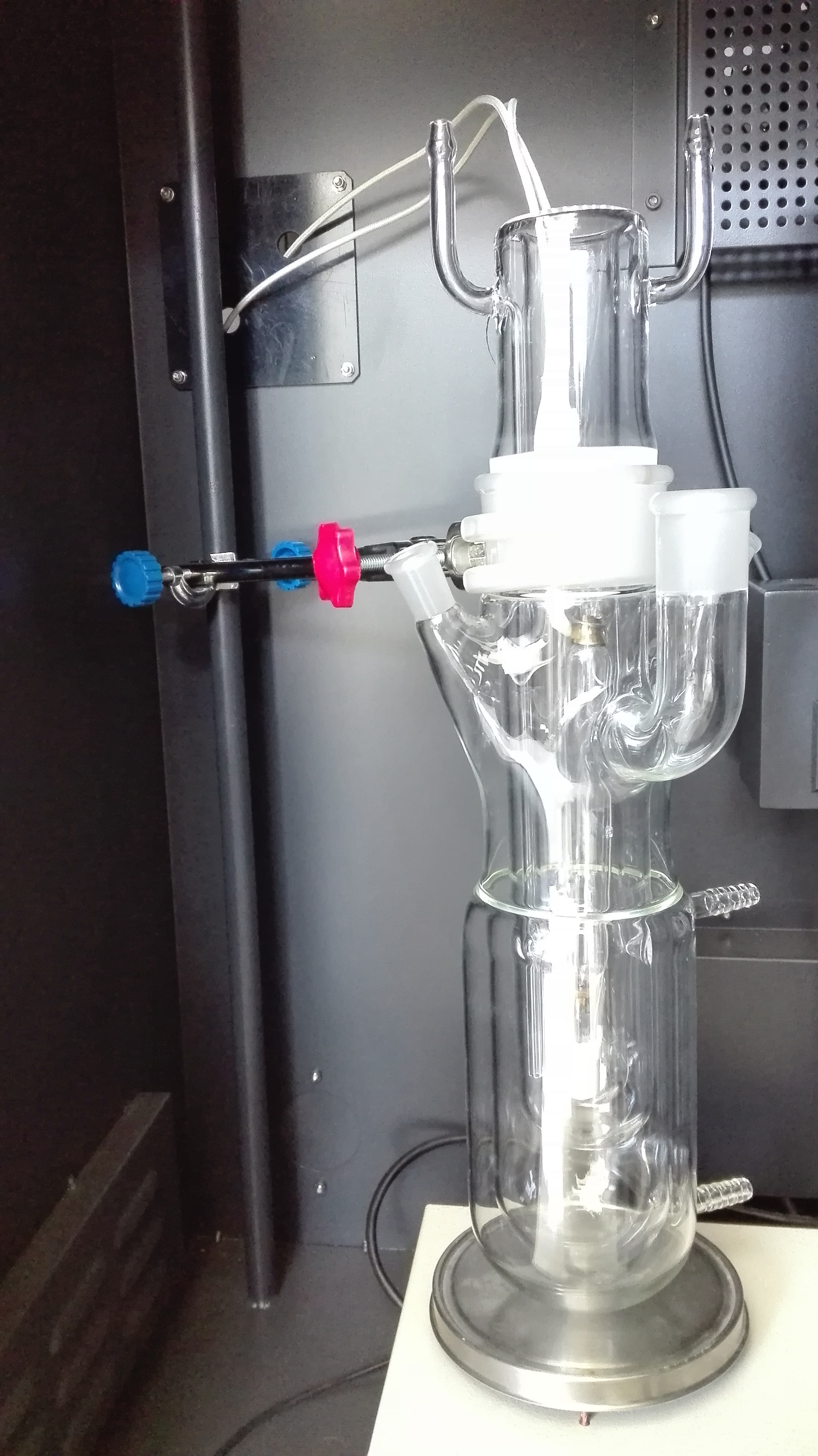型號:PH 250,采用PYREX玻璃,用于光化學(xué)反應(yīng)容器,可以配合冷阱、磁力攪拌,溶液可以有效的接收汞燈照射。反應(yīng)器有效容積250ml,磨口60/40,14/23,19/26,24/29。