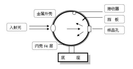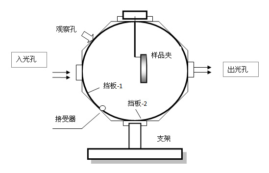 樣品孔,在球體上適當位置裝有接收器,并在接收親器與樣品孔之間設(shè)以擋板,以防樣品的一次反射光進入接收器。