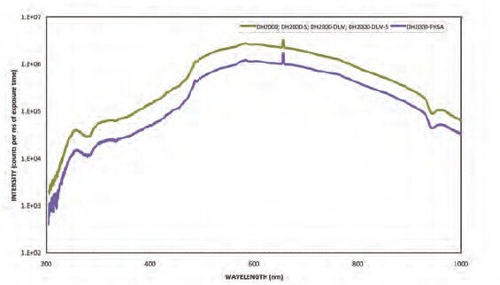 -鎢鹵組合式光源在一個光路中集成了氘燈光源和鎢鹵光源的連續(xù)輸出光譜,產(chǎn)生215-2000nm的穩(wěn)定的光譜輸出。另外紫外增強(qiáng)型光源的輸出光譜的范圍為190-1700nm。