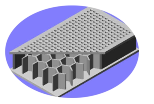 ●蜂窩結(jié)構(gòu)材料隔離層面, 多孔空氣阻尼, 固有頻率低, 隔振性能好