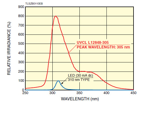 紫外陰發(fā)射光源是一種深紫外光源,其通過利用電子束來進行發(fā)光,以此實現(xiàn)產(chǎn)品的“零汞”。該產(chǎn)品亮度的峰值波長是紫外LED的8倍左右,另外,其尺寸小巧緊湊,內(nèi)涵一個內(nèi)置電源,因此它可被安裝到任何一種儀器中進行使用。