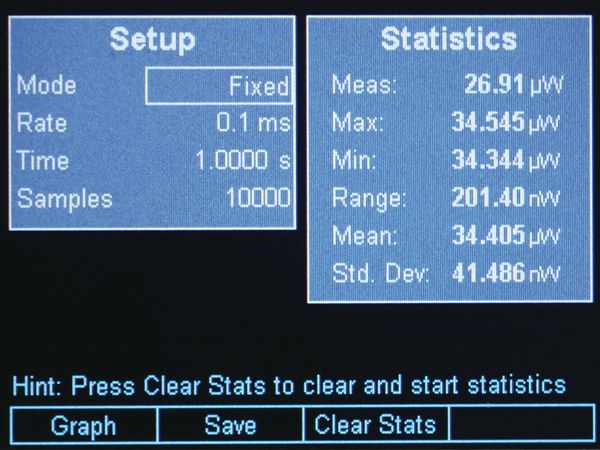 能夠進(jìn)行脈沖峰間測量,在樣本速率為250 kHz 時(shí),重復(fù)頻率高達(dá)4 kHz。脈沖、峰間和DC 光源測量可以W、dBm、dB、J、A、V Sun 等為單位進(jìn)行顯示,取決于使用的探測器類型。